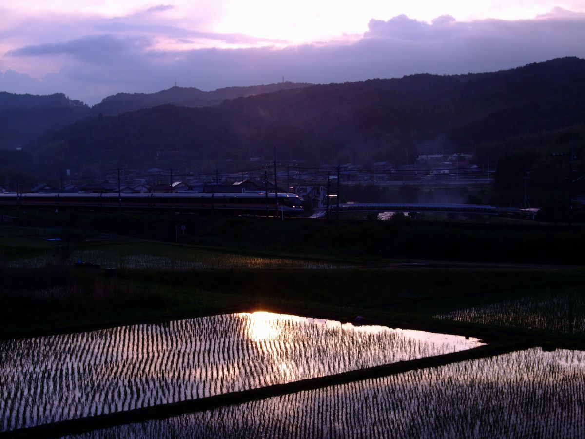 下記の写真は田植えが終わった初夏の農村を写した風景です。